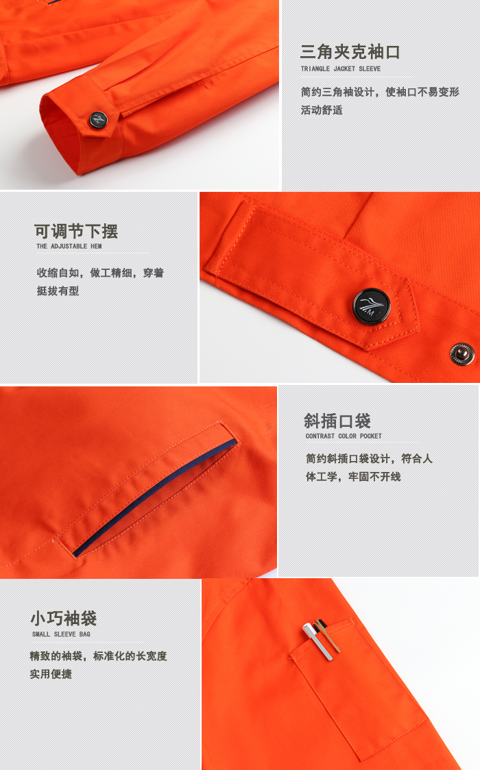 新款橘黃色帶反光條工作服