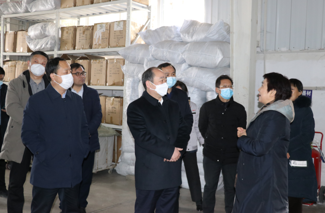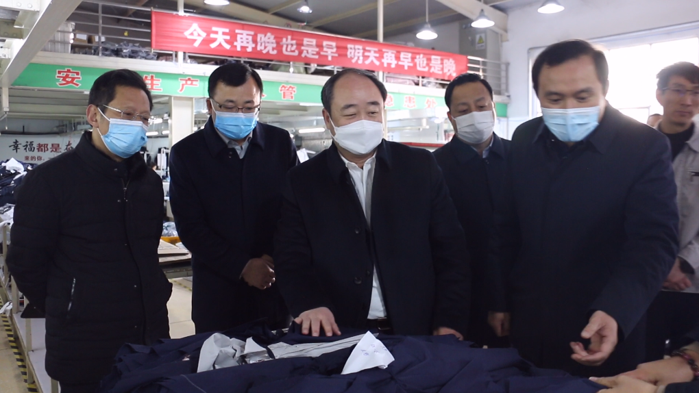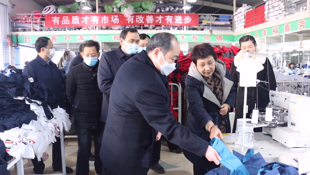 1月29日,河南天曼服飾開工第二天,縣委書記張智廣帶隊深入企業調研督導復工復產工作,縣委常委、宣傳部長、副縣長劉彥,縣委常委、縣委辦主任郭惠軒、縣委常委、統戰部長張國濤參加調研。