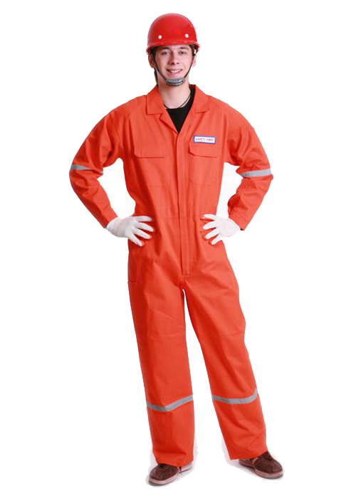 面料:100%純棉,16*12,108*56,260-270GSM;前胸繡花牌標志,前門襟樹脂拉鏈,兩個帶蓋胸兜和兩個斜插褲兜,后背臀部貼兜,兩條3CM反光條分別環繞褲腿和兩手臂一周。